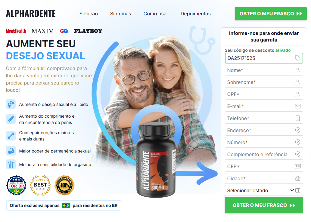 Se você busca melhorar seu desempenho masculino, aumentar a energia e reconquistar a confiança na hora H, Alphardente Cápsulas pode ser a escolha ideal. Com ingredientes naturais e resultados comprovados, esse suplemento vem ajudando milhares de homens no Brasil a recuperar sua potência e autoestima.